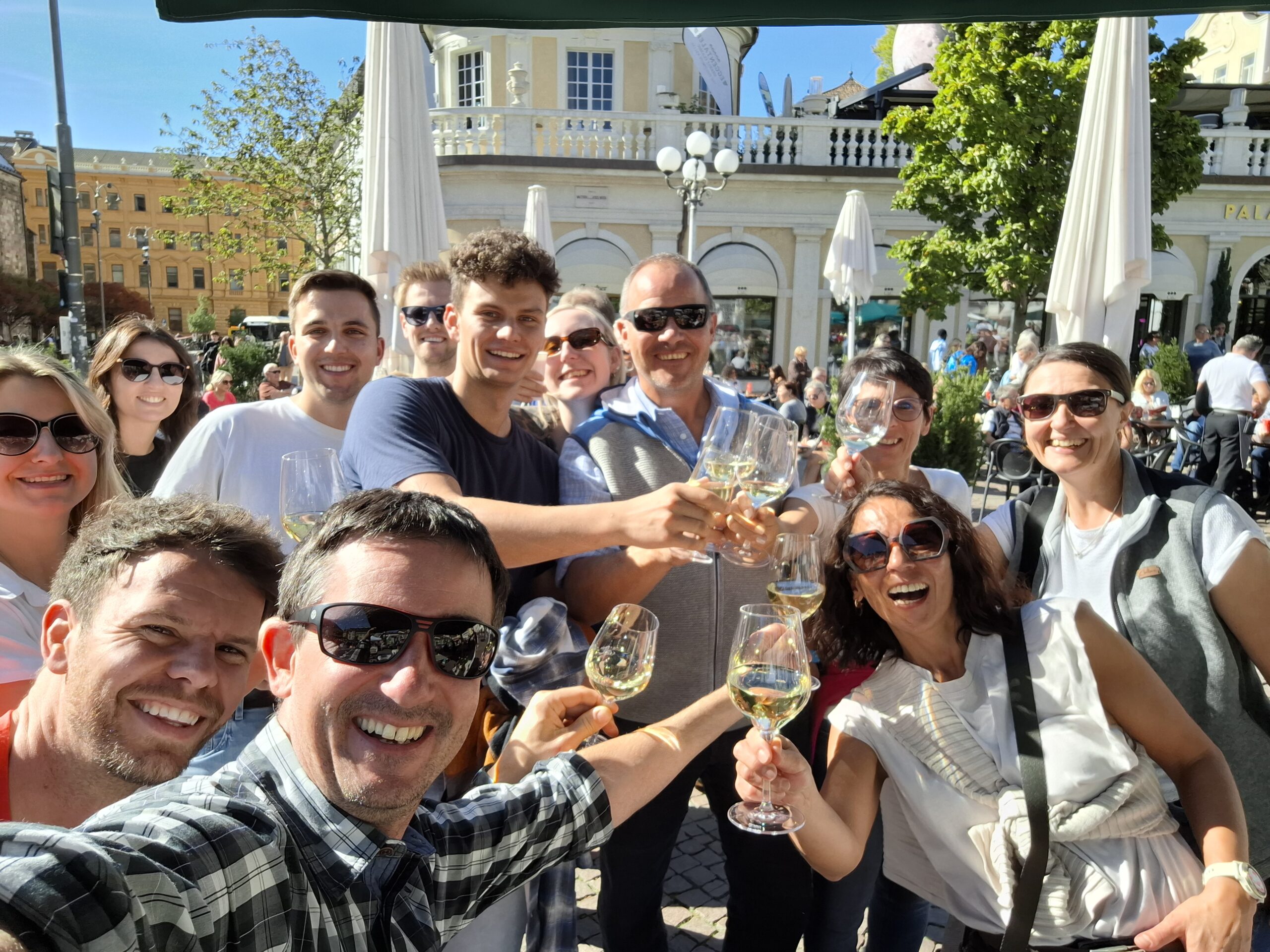 Am 11. Oktober war es endlich soweit. Mit Wettersteinreisen ging es nach Bozen wo an diesem Tag ein Erntedankfest gefeiert wurde. Sogleich mischten wir uns unters Volk und genossen das erste Glasl Wein bei herrlichem Wetter. Weiter gings auf das Schloss Sigmundskron von Reinhold Mesner. Eine wunderschöne Anlage die wir besichtigten. Zum Abschluss gab´s a richtiges Törgelle Menü und zu später Stunde gings dann wieder retour nach Scharnitz. Ein Traum Tagl wars. DANKE an den Ausschuss der den Ausflug erst möglich gemacht hat !!!
