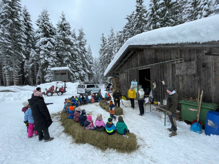 Am 20 Feb. machten die Kindergartenkinder von Scharnitz einen Ausflug zur Windfütterung. Die Feuerwehr und